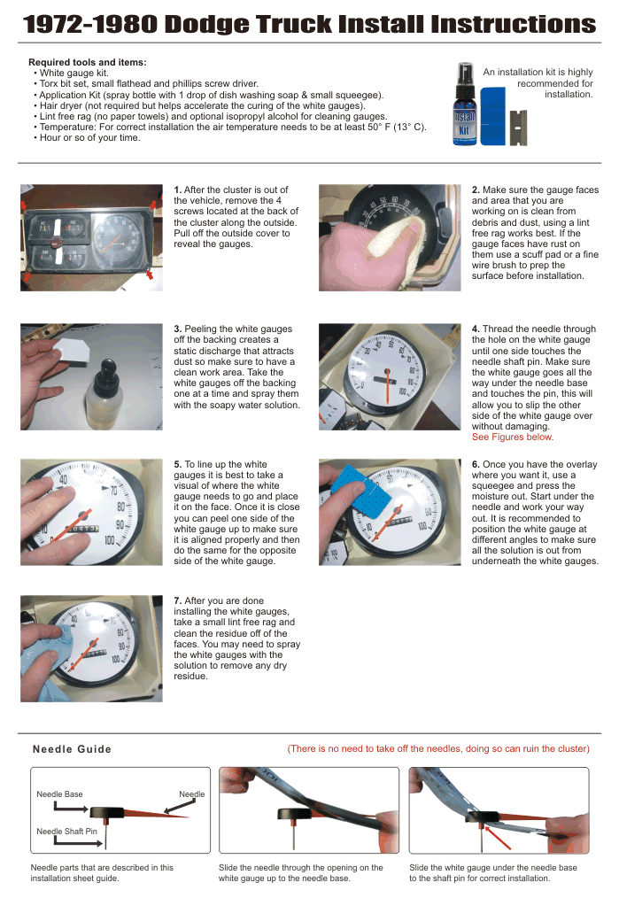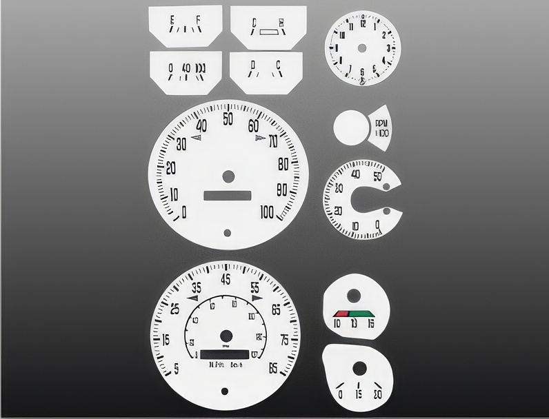 - Manufactured on a 3 Mil. matte white material that allows an easy install on curved and odd shaped gauges.