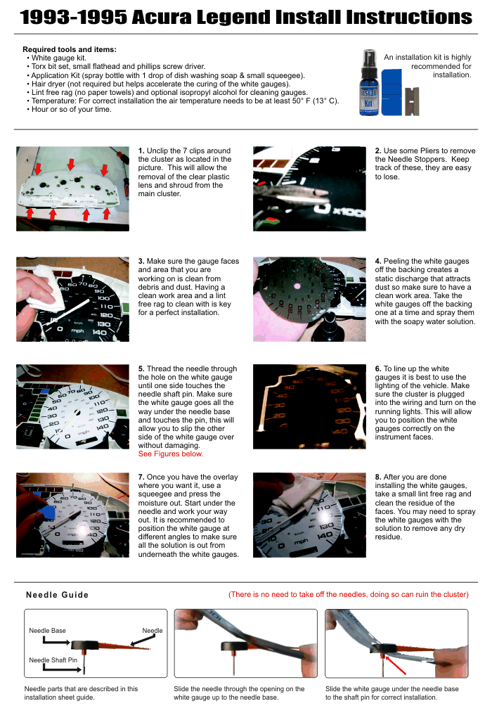 - Needle removal is not required at all besides the clock, the white gauges easily slip over the needles.