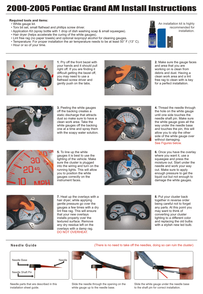 - Needle removal is not required at all besides the clock, the white gauges easily slip over the needles.