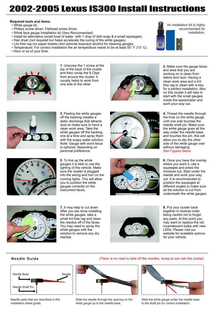 - Needle removal is not required at all besides the clock, the white gauges easily slip over the needles.